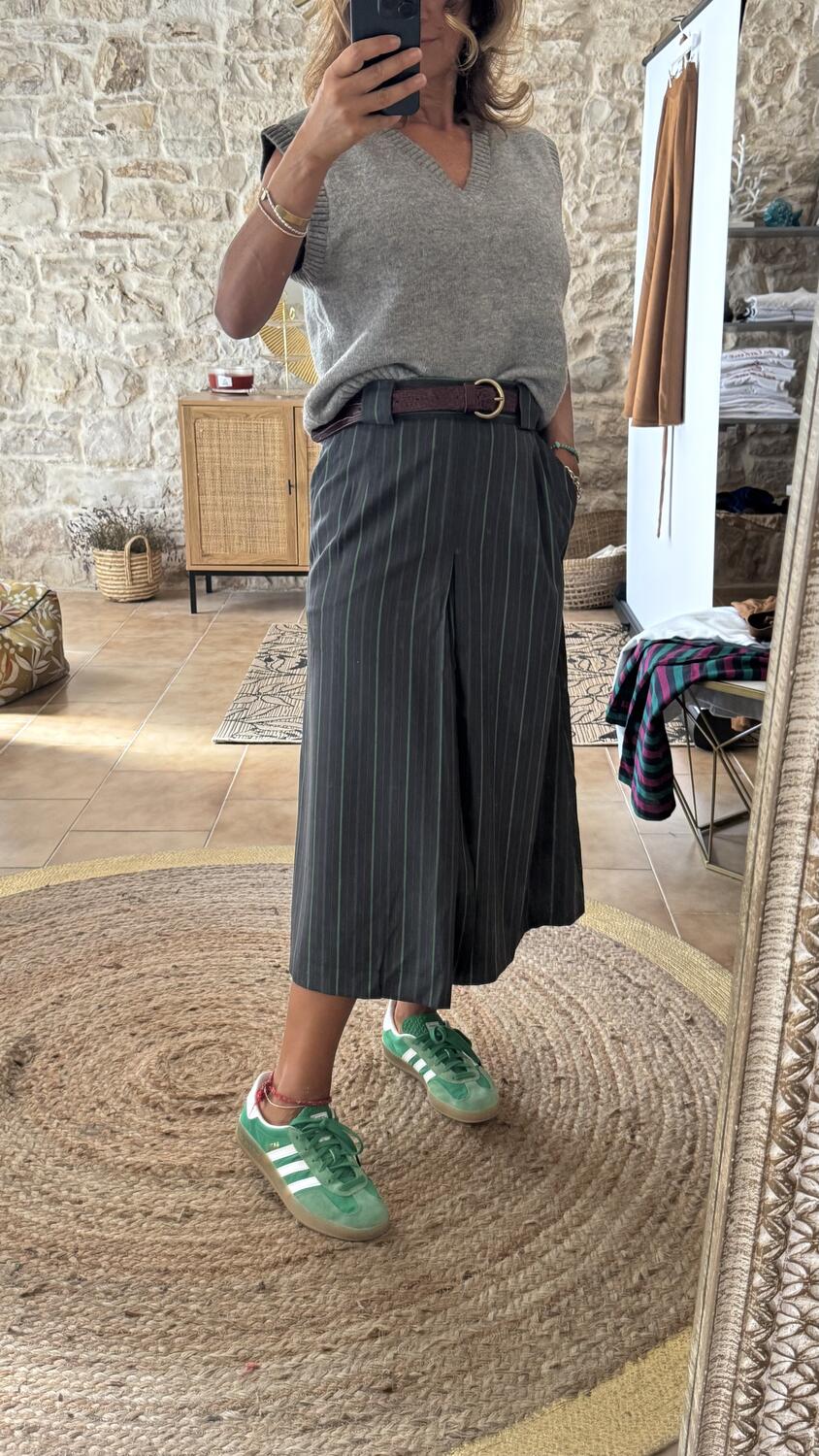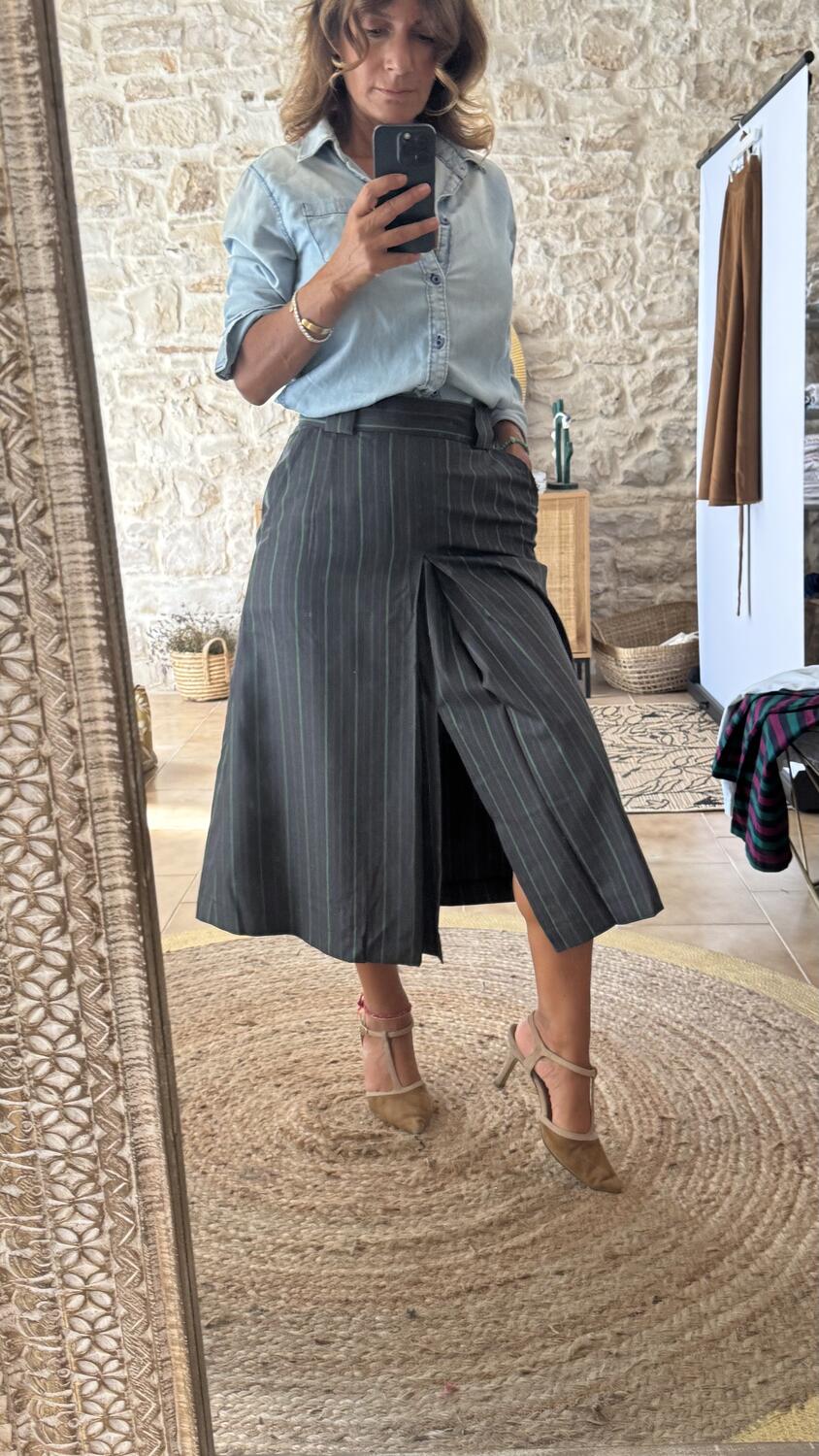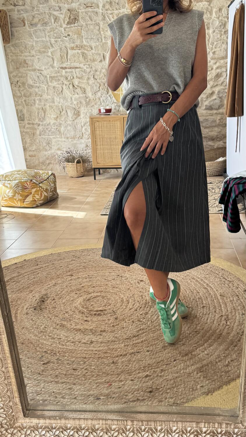 Gonna in cashmere, seta e lana con piega baciata e spacco centrale