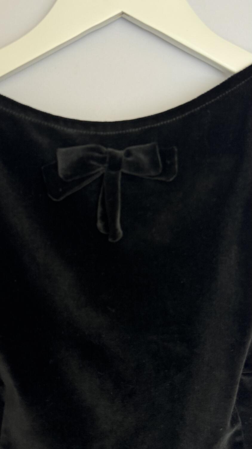 Un capo raffinato e intramontabile: la blusa in velluto nero con fiocco è realizzata artigianalmente in velluto di cotone morbido e luminoso.