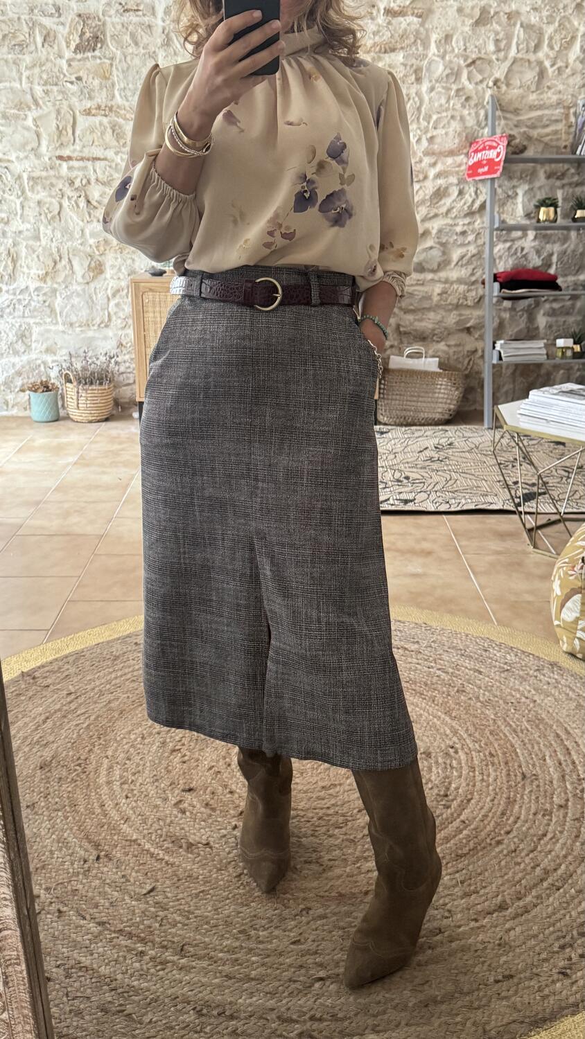Questa gonna appartiene alla Capsule Heritage, una selezione di tessuti iconici che raccontano tradizione, calore e autenticità.
