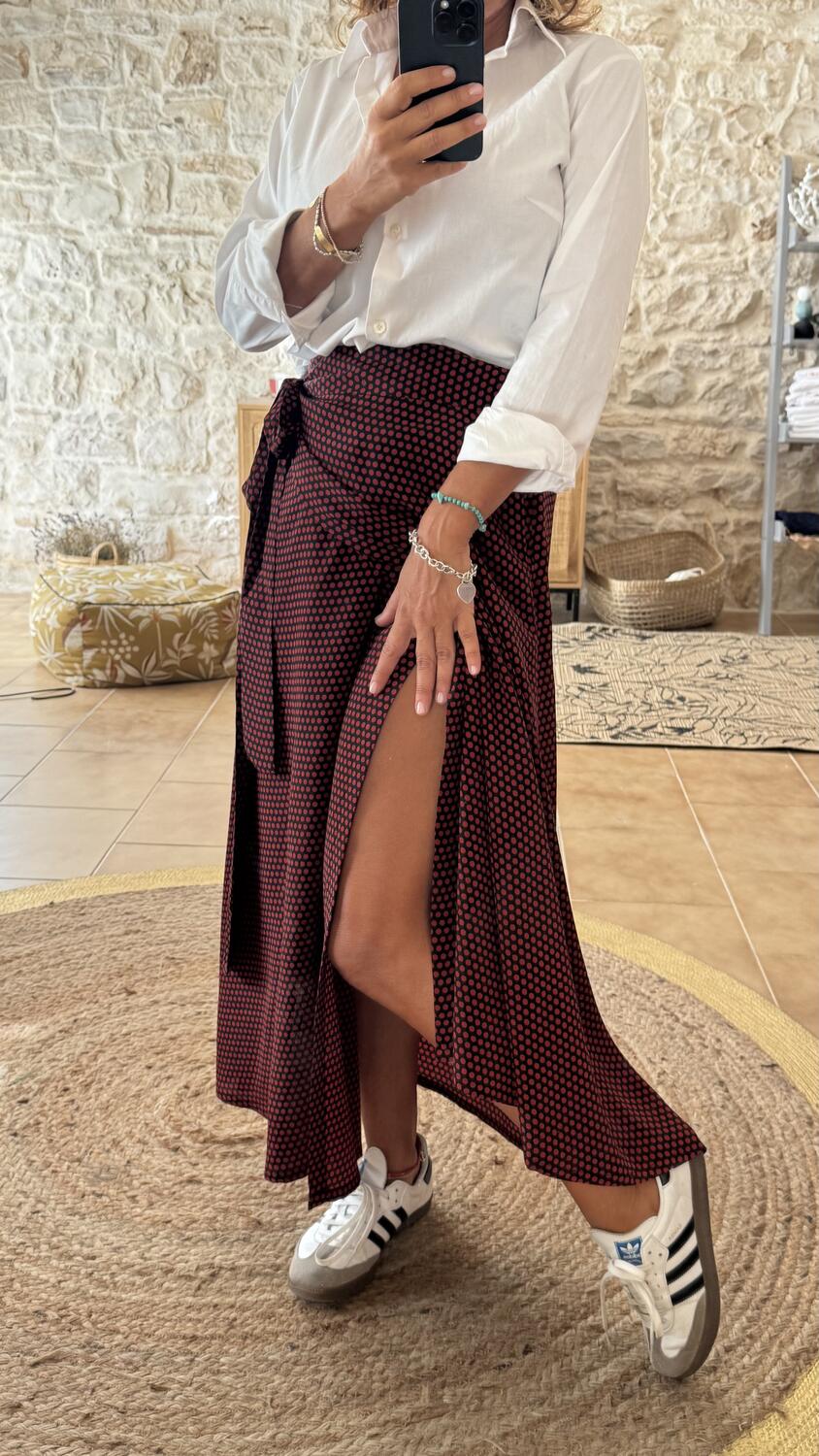 Gonna portafoglio in pura seta crepe, taglia unica, lunghezza 85 cm.