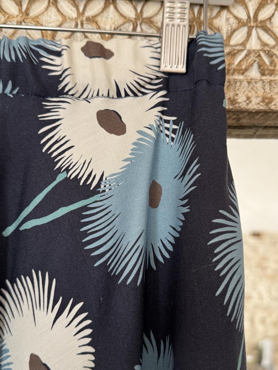 Gonna nel modello semiruota realizzata sartorialmente in shantung pura seta con disegno floreale